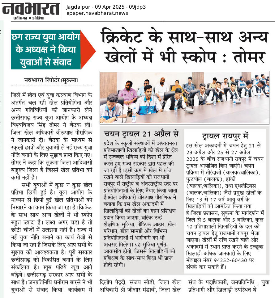 क्रिकेट के साथ साथ अन्य खेलों में भी स्कोप : तोमर
