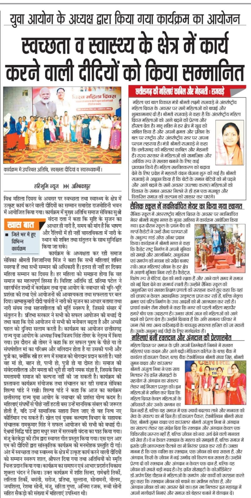 स्वक्षता एवं स्वास्थ के क्षेत्र में कार्य करने वाली दीदियों को राज्य युवा आयोग अध्यक्ष ने किया सम्मानित