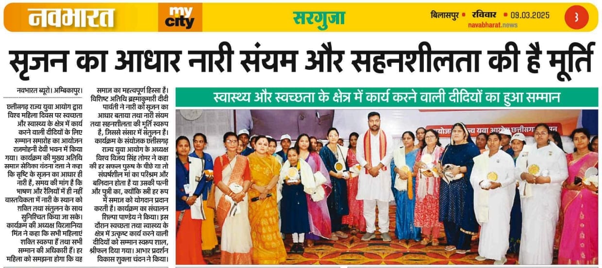 स्वक्षता एवं स्वास्थ के क्षेत्र में कार्य करने वाली दीदियों को राज्य युवा आयोग अध्यक्ष ने किया सम्मानित